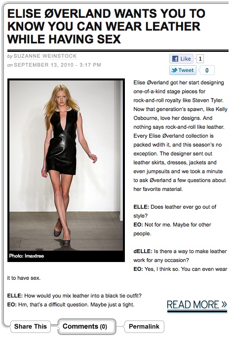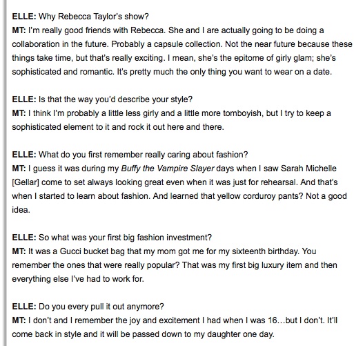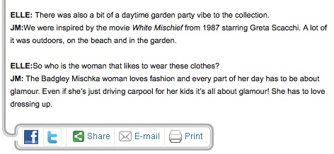 Elle: Designer and Celebrity Q&As Share this: Click to share on X (Opens in new window) X Click to share on Facebook (Opens in new window) Facebook Like Loading... Related